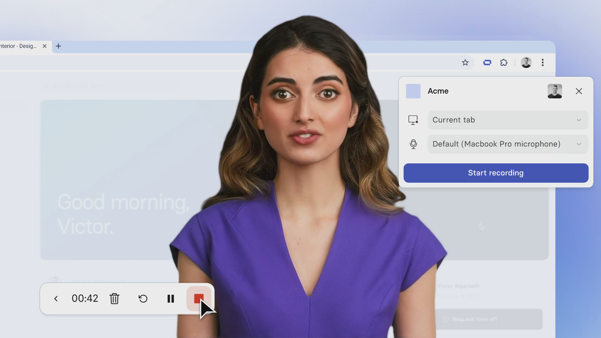 Pick a tab, hit record and start talking.