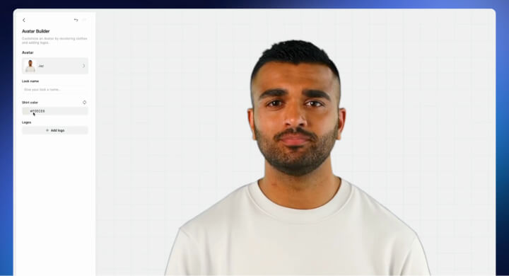 Personalize AI avatars by changing the color of their clothing (available in all paid plans) and adding your logo (only available for Enterprise customers).